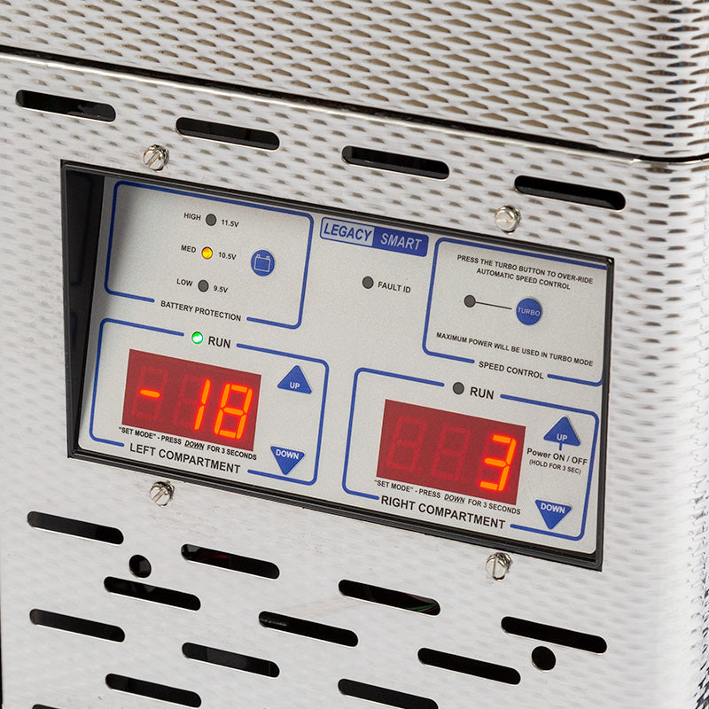 Smarter construction is one element of National Luna’s superior performance. Smarter compressor control is the other. The National Luna Off-Road Compressor will automatically operate in the high-speed TURBO mode until the temperature set point is reached. Thereafter it will operate in the energy-efficient idle mode, ensuring optimal power consumption. Because different battery types can be discharged to various levels, you have the power to select the depth of discharge of the battery, ie. how low you intend to allow the battery to flatten. All National Luna fridges and freezers incorporate Low/Medium/High battery cut-out protection circuitry. And finally, when it comes to operating your National Luna fridge or freezer, you are in charge like no other manufacturer. Equipped with an easy-to-read digital thermostat, the programmable intelligent controller allows you to set the exact temperature while simultaneously showing you the current compartment temperature. TURBO mode can also be manually selected.