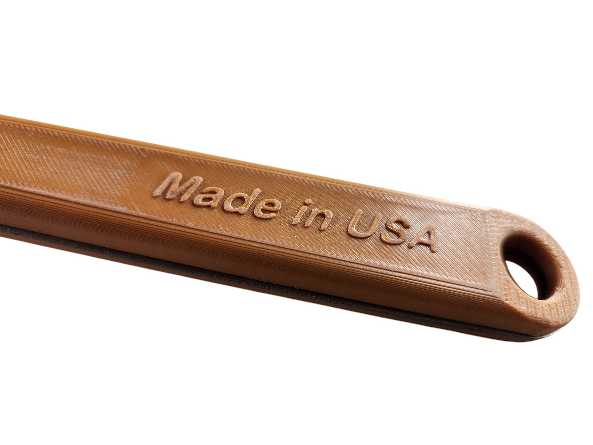 The Skottle Tools are American made using Stainless Steel and a 3D printed handle. The end of both the Spatula and Scraper have a slightly rounded end to match the curvature of the Skottle pan.